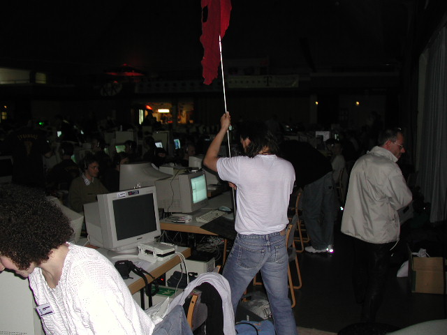 Erst mal die Fahne aufstellen . Das war vielleicht ein gewurstel bis die aufgestellt war .