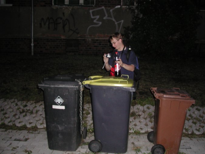 Kaum angekommen , begegnete uns auch schon der erste Penner beim Müllwühlen.