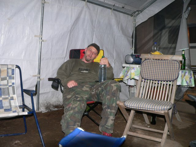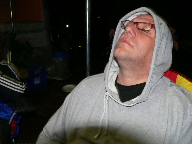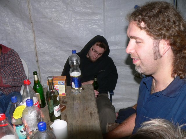 Die Stunde der Meditation. Einer schafft es sogar mit dem Bier in der Hand zu Meditieren.