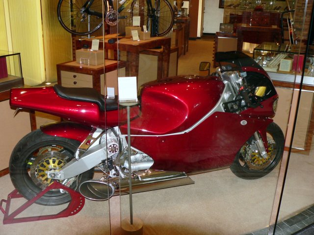 Im hauseigenen Museum steht, das angeblich schnellste Motorad der Welt (über 250 m/ph)