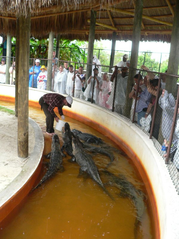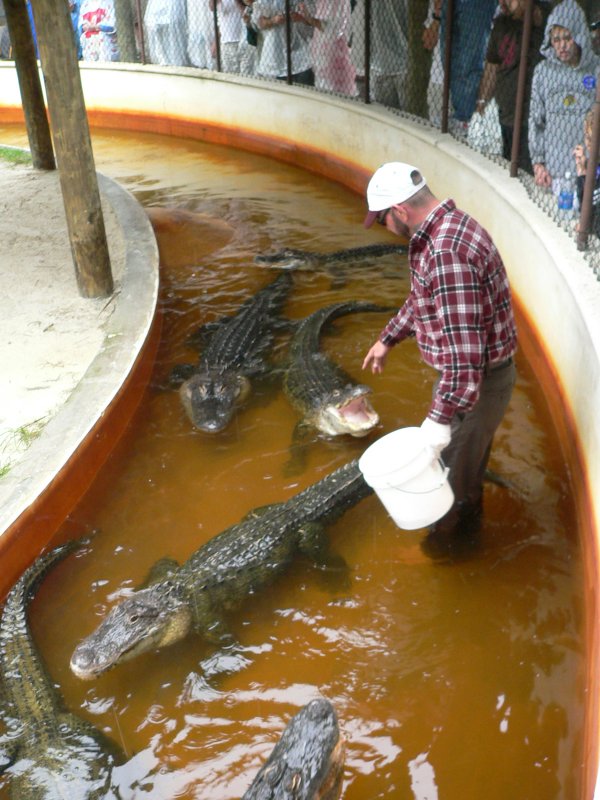 Der Ranger hatte absolut keine Angst. Ist Barfuß zwischen die Alligatoren und hat sie gefüttert
