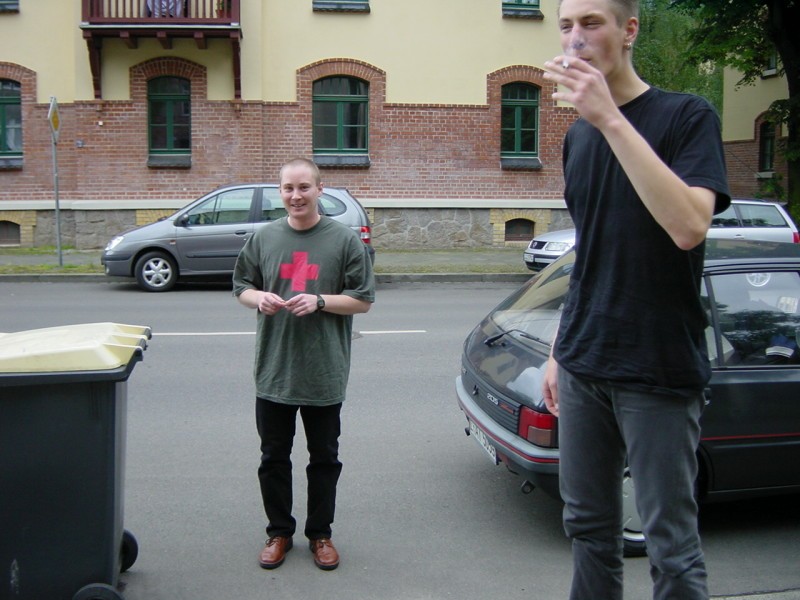 Gleichzeitig in Leipzig bereiten sich die anderen schon mal auf die fahrt vor (oben Wisaelf und Fragel , unten S4T4N und P4IN)!
