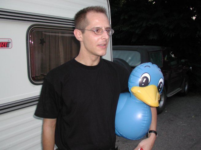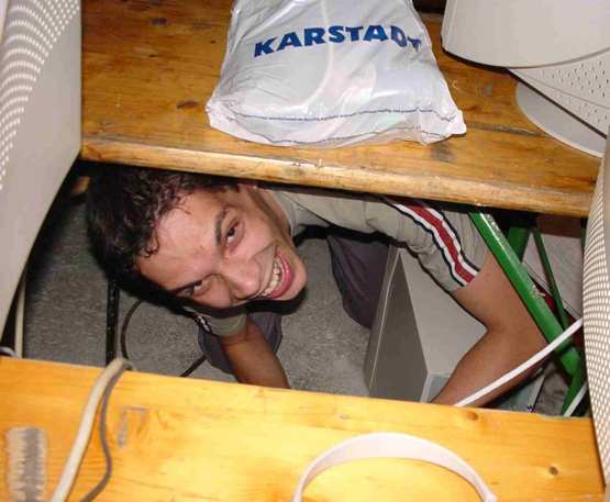 Erst mal rein und aufbauen . Und der erste den wir sehen ist Wallace !