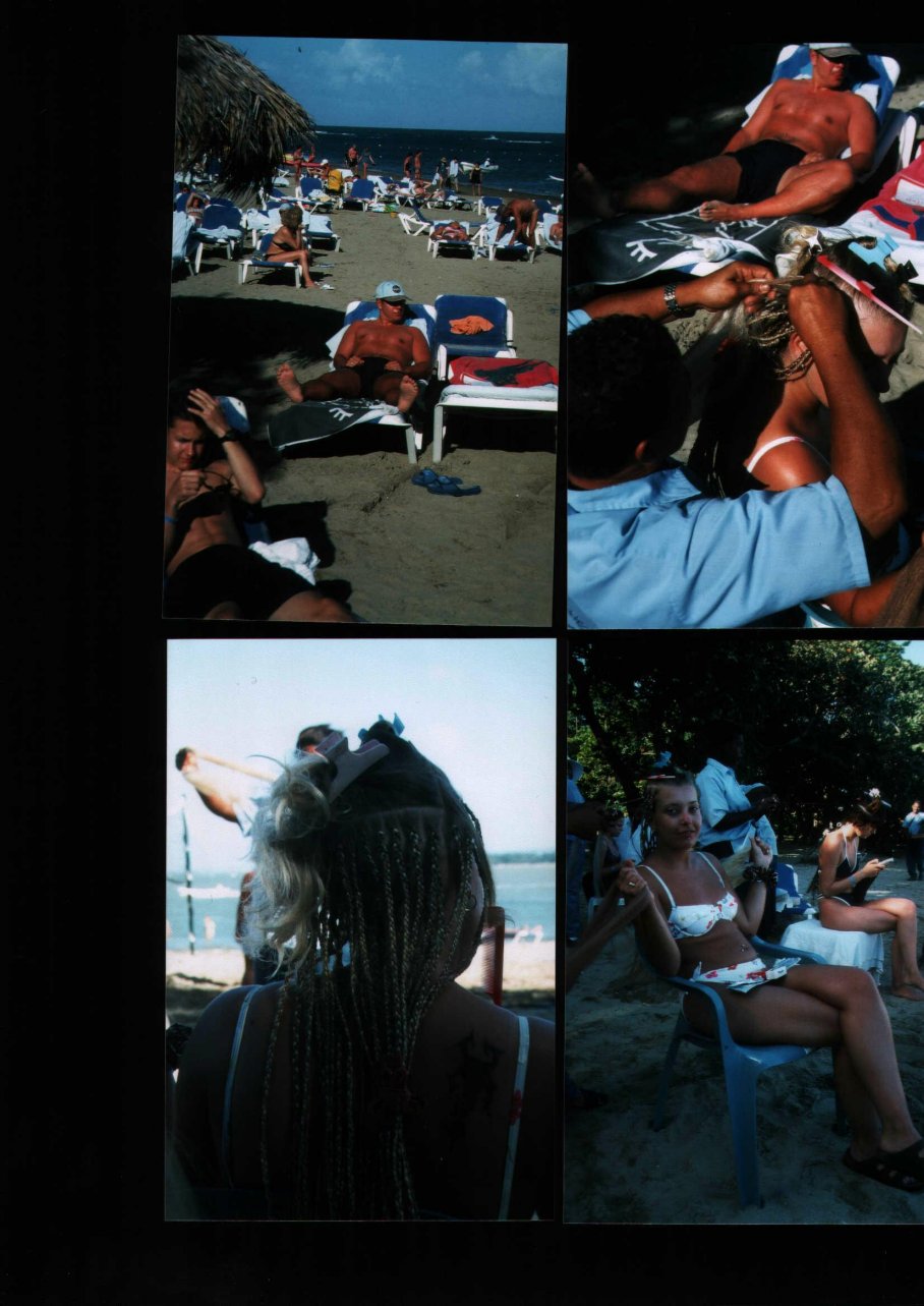 Am Strand lassen sich die Mädchen zöpfchen flechten , wärend sich die Männer entspannen !