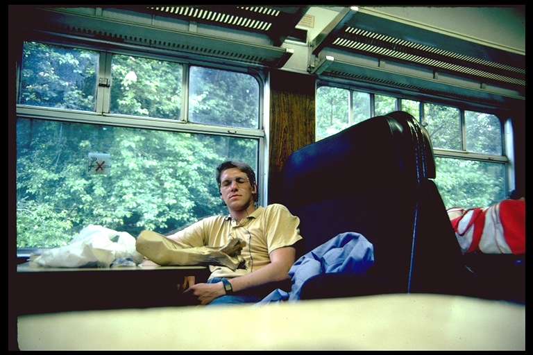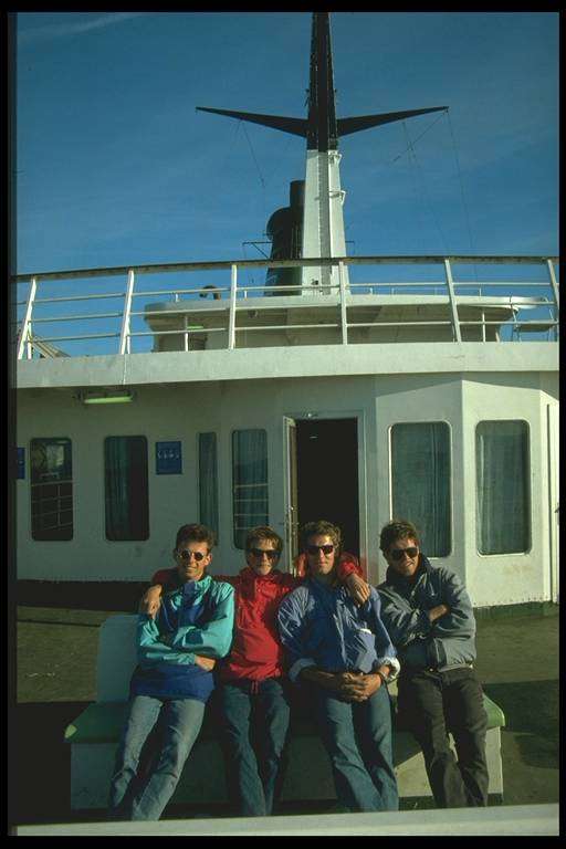 Auf der Fähre von Rosslare (Irland) nach Cherbourgh (Frankreich) . Die Überfahrt dauert 17 std (Buffet, Kino und Disco an Bord) .