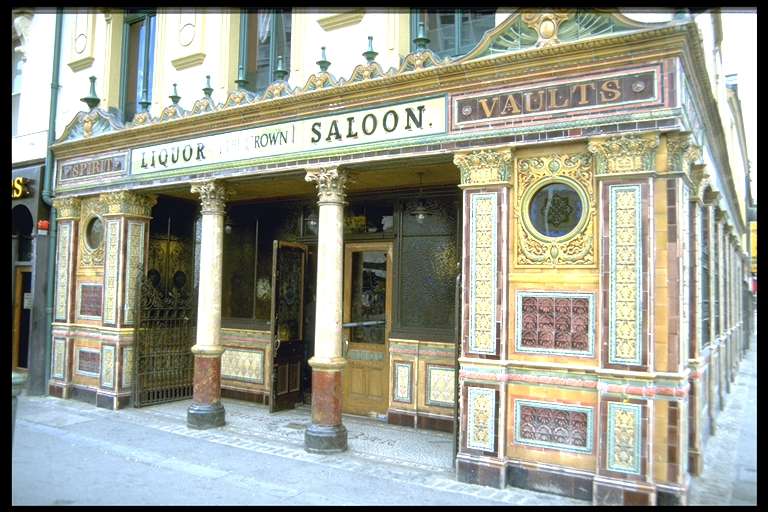 Es heist dies währe das schönste Pub der Welt (finde ich auch) , Die Fassade besteht aus Mosaik und das innere ist aus Holz (mit schnitzereien).