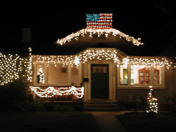 Als wir am Abend zurückkommen fallen uns die Weihnachtslichter der verrückten Amis auf .