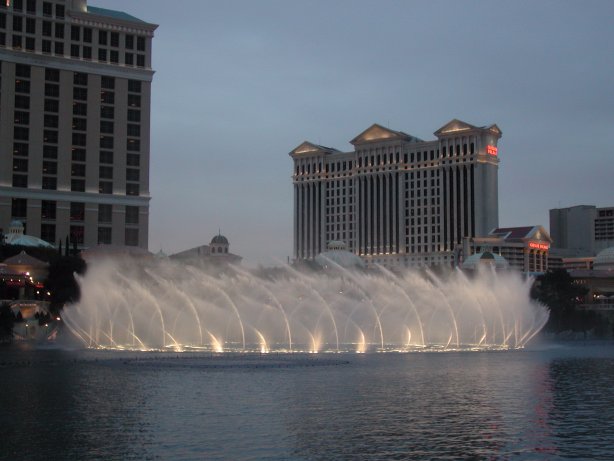 Die Wasserspiele des Belagio. Die Show startet jede 1/2 std mit einer anderen Musik.