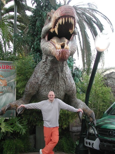 Schnell noch ein Foto mit dem freundlichen T-Rex von nebenan.