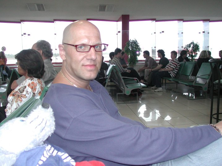 Warten auf den Bus der uns zum Flughafen bringt .