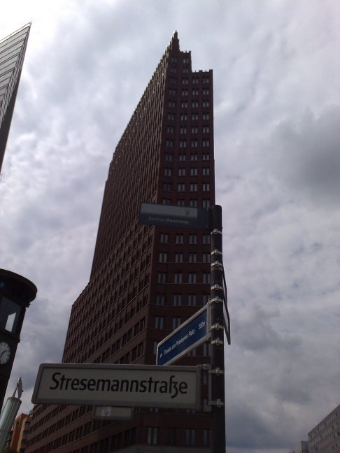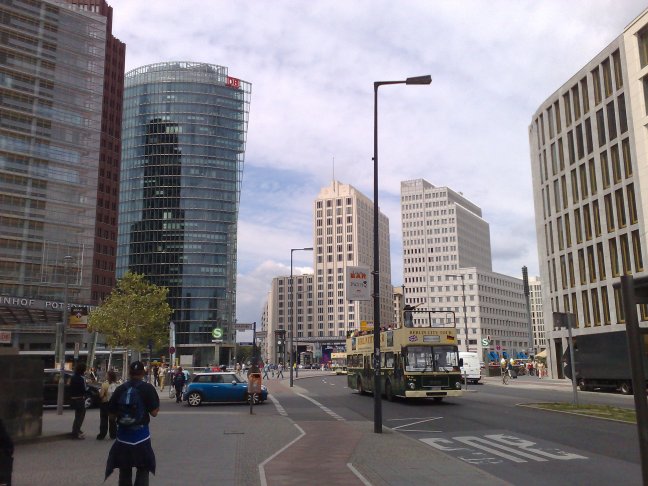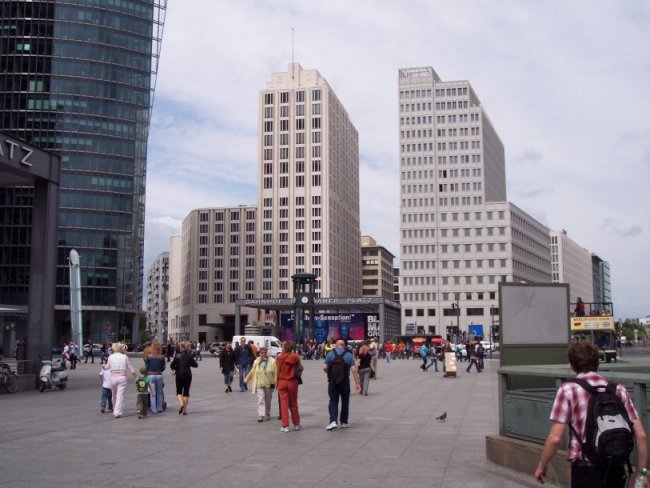 Potsdammer Platz. In der Mitte ist das Ritz Carlton.