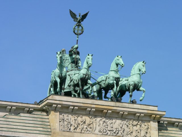 Quadriga mit Siegesgöttin. So heist sie aber erst seit wir sie von Napoleon zurück geklaut haben. Vorher hies sie Friedensgöttin.