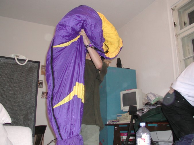 Richi beim Unarmed-Kampf mit einem Schlafsack.