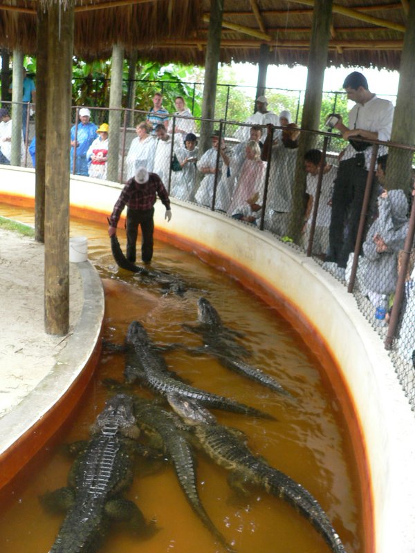 Der Ranger hatte absolut keine Angst. Ist Barfuß zwischen die Alligatoren und hat sie gefüttert
